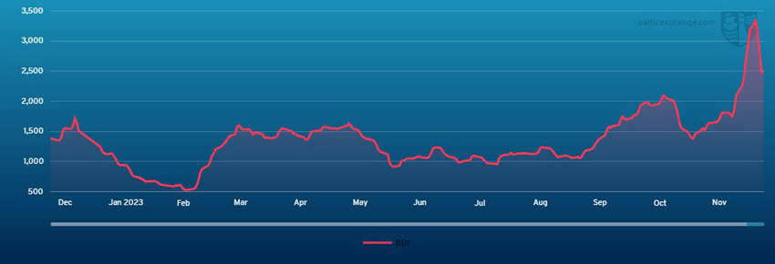 A quiet week for the BLPG1 Ras Tanura-Chiba route, the index fell by US$23 to close at US$125.286. The significant drop comes mainly from the lack of activity, with few enquiries and ships failing subjects with cargoes being taken back internally, it has resulted in rates significantly weakened compared to a few weeks ago. There isn’t much left of 2023 but optimism hasn’t quite died out yet with brokers feeling there could be some life before we celebrate the New Year.