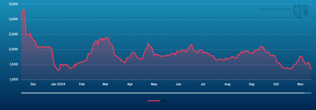 THE BALTIC Dry Index fell sharply this past week to 1354 on Friday 29 November.