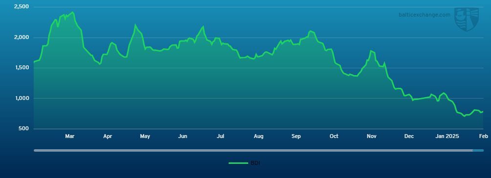 THE BALTIC Dry Index dipped during the week before climbing to 792 on Friday 14 February.